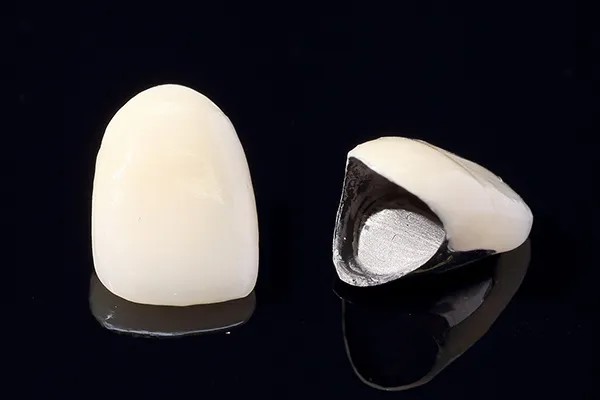 外側はセラミック(陶器)、内側が金属(チタン)という構造のクラウンです。